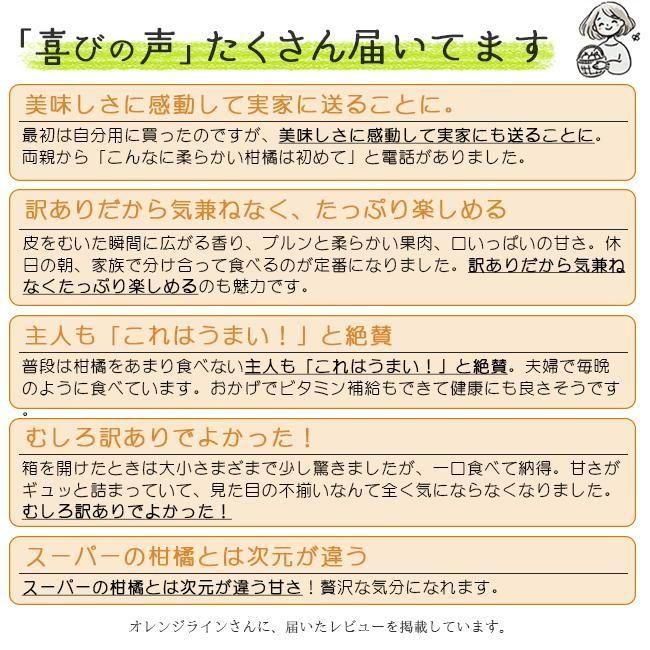 ■不良品について | お届けの商品は、細心の注意を払い「選果」「梱包」を行っておりますが、輸送時の衝撃や温度の変化等で、破損や傷みが出る可能性もあります。そういった万が一の場合の対応を想定して、重量の約5%を増量してお届けしております。それでも「傷みが多すぎる」「破損している」といった場合はご対応いたしますので、到着から2日以内にご連絡お願い致します。2日以上経過している場合は対応致しかねる場合がありますのでご注意ください。